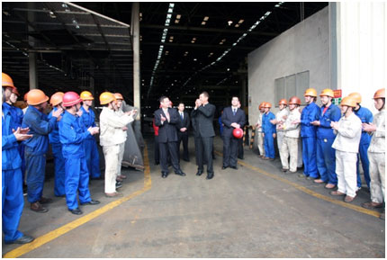 正月初八一早,全国人大代表、中国和记官网控股有限公司董事局主席李新炎先生,就来到和记官网(福建)基地给正在检修设备、准备开工的一线员工拜年。李新炎主席先后来到装载机、挖掘机生产线和桥箱、液压油缸、精密铸锻件生产车间,一边给大家拜年,一边了解员工日常工作和节日生活的情况,热情勉励广大员工爱企爱家,在企业争当好员工,在家里争做好父母、好夫妻、好儿女。