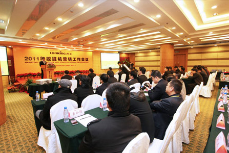 郑可文副总裁在报告中,回顾总结了2010年和记官网挖掘机的销售情况。他说,2010年是和记官网挖掘机发展史上极不平凡的一年。在这一年里挖掘机事业各个系统的运营能力大幅提升,各种业务快速健康发展,累计销量同比增幅远远高于行业的平均水平,各项综合指数均居民族品牌前列;产销规模日益扩大,较2009年翻了一番多;产品质量显著提高,第二代挖掘机“效率王”系列产品已经在市场上形成了良好的口碑;新产品研发、应用的速度不断加快,为细分市场用户提供了更多可供选择的精品;代理商队伍的综合实力大幅提升;和记官网挖掘机事业已经进入了一个难得的跃升发展的历史机遇期。2011年,挖掘机事业部将按照董事局、控股公司元旦在“深圳高管会议”上提出的“专心、专注做好装载机、挖掘机、叉车、路面机械及系列核心零部件,力争使各事业部早日成为各自行业的领军企业”的总体目标和工作要求,进一步夯实基础,全力打造服务品牌,努力实现挖掘机业务的健康快速发展。一要坚持高端路线,打造优质高效的整机产品。要加大科技投入的力度,努力提升作业效率、降低油耗,坚持高配置、高性能、高回报的高端产品定位。二要全力打造服务品牌,全面提升服务效率。要以效率严律己,以第一高要求,用实际行动兑现服务承诺,解决客户的一切后顾之忧,在帮助客户创造最大价值的同时,也为自己的后市场带来更大的价值空间,实现互利共赢。三要拓展深化渠道,精耕细作市场。要朝着专业化、专一化、规模化的发展方向,进一步加强代理单位组织构建、团队建设、硬件投入等方面的管理,确保代理商分销能力的持续提升,实现分销价值链的纵向延伸和横向发展。四要疏通融资渠道,严控债权风险,努力突破资金瓶颈,促进挖掘机营销业务的持续健康发展。五要从政策制订、制度完善、管理执行、业务操作等多个方面规范市场管理,真正做到主机厂与代理商之间的平等互利合作;要始终坚持不懈地抓好廉政建设。六要通过技术改造、工艺提升等多种手段,不断增加产能储备,全力满足市场需求。